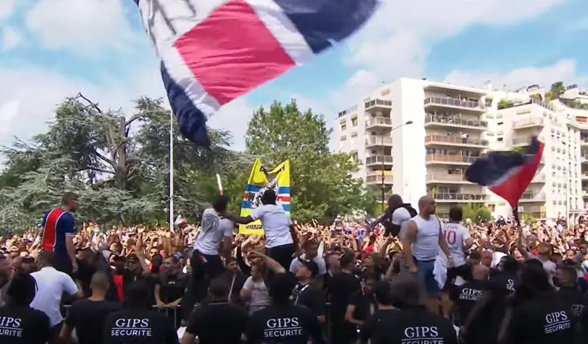 Fanii lui PSG îl așteaptă pe Leo Messi în fața stadionului. Captură Youtube