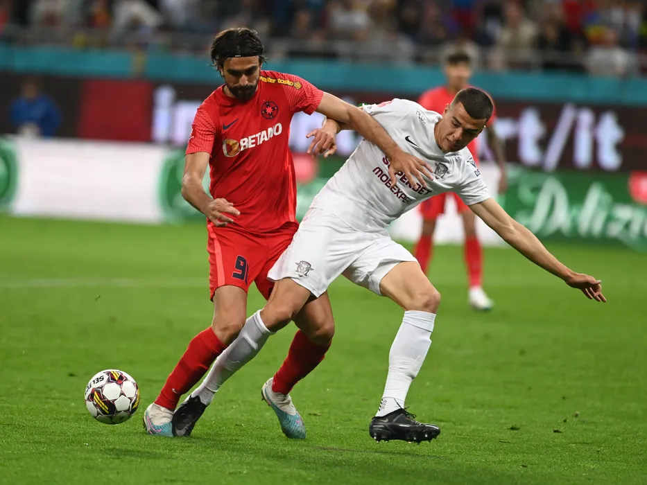 Andrea Compagno si Cristian Ignat in meciul de fotbal dintre FCSB si Rapid Bucuresti, contand pentru Play-off-ul Superligii Superbet, desfasurat pe Arena Nationala din Bucuresti, sambata 27 mai 2023. © FOTO:Razvan Pasarica/SPORT PICTURES