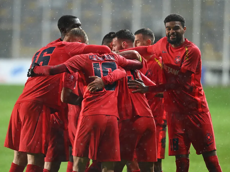 Bucurie a fotbalistilor stelisti dupa un gol marcat cu Sylas Laouari Edjouma Malcom si Octavian George Popescu in meciul de fotbal dintre Chindia Targoviste si FCSB, contand pentru Superliga Superbet, desfasurat pe Stadionul Ilie Oana din Ploiesti, duminica 11 decembrie 2022. © FOTO:Razvan Pasarica/SPORT PICTURES
