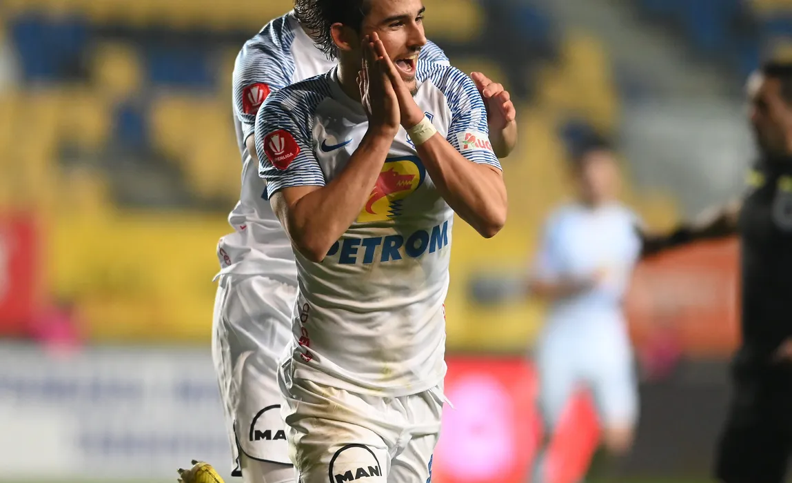 Alexi Paul Pitu se bucura dupa un gol marcat in meciul de fotbal dintre Chindia Targoviste si Farul Constanta, contand pentru Superliga Superbet, desfasurat pe Stadionul Ilie Oana din Ploiesti, sambata 12 noiembrie 2022. © FOTO:Razvan Pasarica/SPORT PICTURES