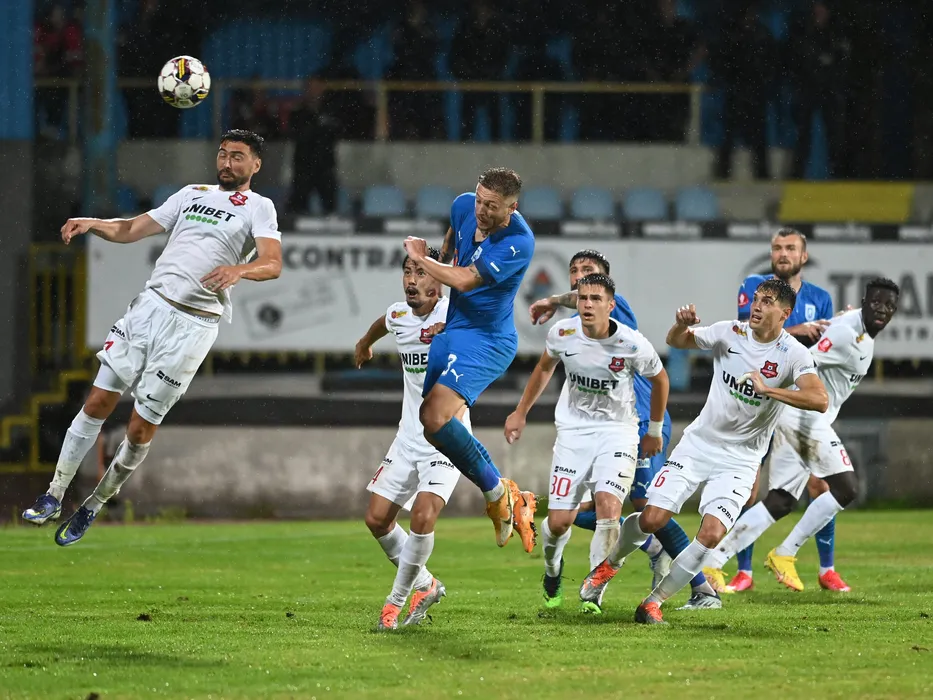 Ionut Stoica, Mino Sota, Bogdan Alexandru Mitrea, George Daniel Paraschiv, Paul Papp, Paul Marius Antoche si Baba Alhassan in meciul de fotbal dintre FC Hermannstadt si Universitatea Craiova, contand pentru Superliga Superbet, desfasurat pe stadionul Municipal din Medias, vineri 1 septembrie 2022. © FOTO:Razvan Pasarica/SPORT PICTURES