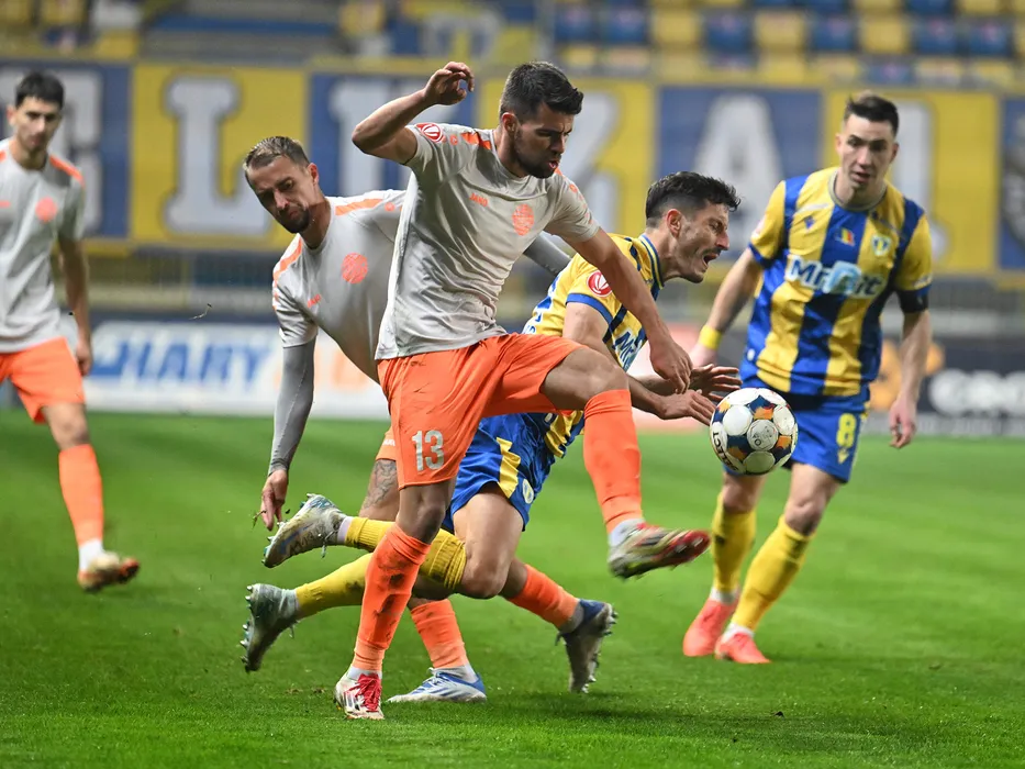 Andrei Sava si Miranda Ricardo Jose Veiga Varzim in meciul dintre Petrolul Ploiesti si Metaloglobus Bucuresti, contand pentru Superliga Superbet, desfasurat pe Stadionul Ilie Oana din Ploiesti, luni 1 decembrie 2025. © FOTO:Razvan Pasarica/SPORT PICTURES