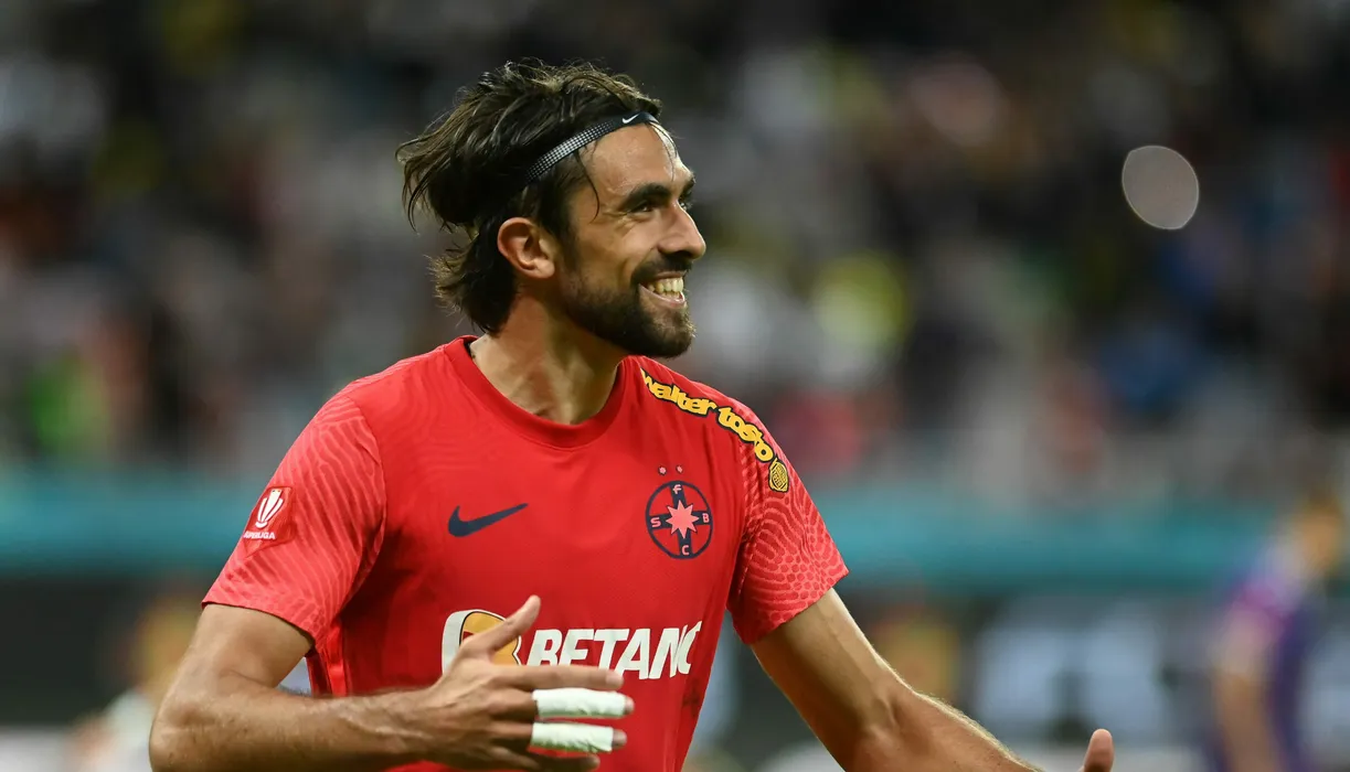 Andrea Compagno se bucura dupa un gol marcat din penalty in meciul de fotbal dintre FCSB si FC Arges, contand pentru Superliga Superbet, desfasurat pe Arena Nationala din Bucuresti, duminica 2 octombrie 2022. © FOTO:Razvan Pasarica/SPORT PICTURES