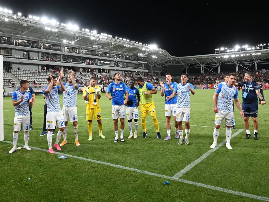 Fotbalistii craioveni saluta galeria dupa meciul de fotbal dintre Dinamo Bucuresti si Universitatea Craiova, din cadrul Superligii Superbet, desfasurat pe Stadionul National Arcul de Triumf din Bucuresti, luni 17 iulie 2023. © FOTO:Razvan Pasarica/SPORT PICTURES