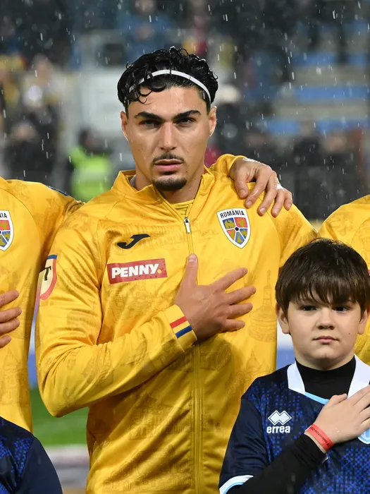 Lisav Naif Eissat la intonarea imnului de stat in startul meciului de fotbal dintre Romania si San Marino, din cadrul Preliminariilor Campionatului Mondial 2026, desfasurat pe Stadionul Ilie Oana din Ploiesti, marti 18 noiembrie 2025. © FOTO:Razvan Pasarica/SPORT PICTURES