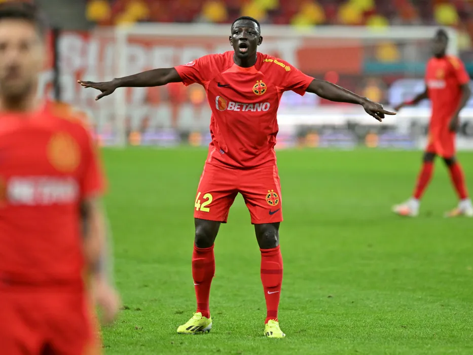 Baba Alhassan reacționează în meciul de fotbal dintre FCSB si Sepsi OSK Sfantu Gheorghe, contând pentru Superliga Superbet, desfășurat pe Arena Nationala din Bucuresti, duminica 11 februarie 2024. © FOTO: Răzvan PĂSĂRICĂ/SPORT PICTURES