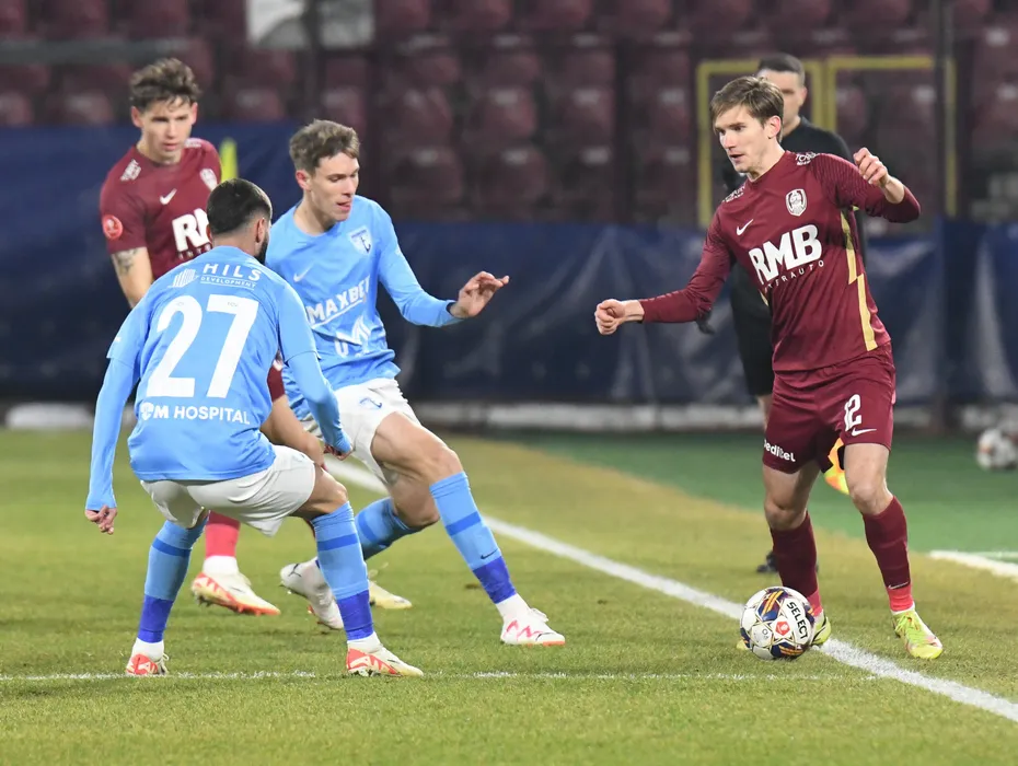 Petar Mamic și Robert Marian Popescu în meciul de fotbal dintre FC CFR 1907 Cluj SA si SC FC Voluntari SA, contând pentru Superliga Superbet, desfășurat pe Stadionul Dr.Constantin Rădulescu din Cluj-Napoca, luni 29 ianuarie 2024. © FOTO: Flaviu BUBOI/SPORT PICTURES