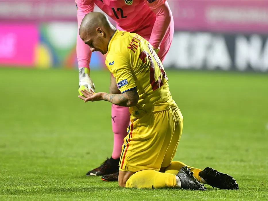 Ionut Mitrita in genunchi in meciul de fotbal dintre Romania si Austria, contand pentru Liga Natiunilor, desfasurat fara spectatori pe Stadionul Ilie Oana din Ploiesti, miercuri 14 octombrie 2020. © FOTO:Razvan Pasarica/SPORT PICTURES