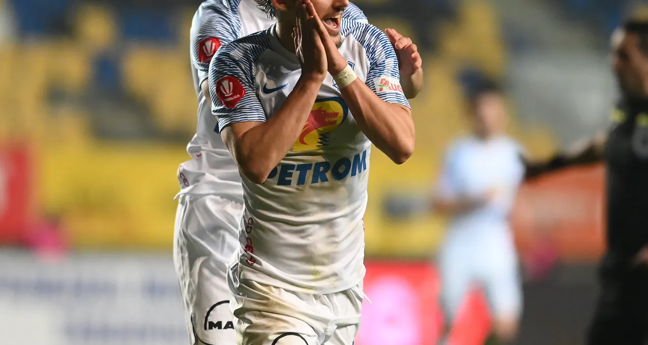 Alexi Paul Pitu se bucura dupa un gol marcat in meciul de fotbal dintre Chindia Targoviste si Farul Constanta, contand pentru Superliga Superbet, desfasurat pe Stadionul Ilie Oana din Ploiesti, sambata 12 noiembrie 2022. © FOTO:Razvan Pasarica/SPORT PICTURES