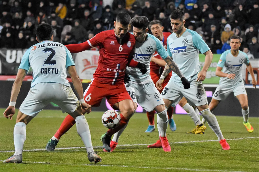 Andrei Chindris si Dennis Man in meciul de fotbal dintre FC Botosani si FCSB, din etapa a play -off-ului Ligii 1, disputat la stadionul Municipal din Botosani, sambata, 29 februarie 2020.© FOTO:Dragos Pascaneanu/ Sport Pictures