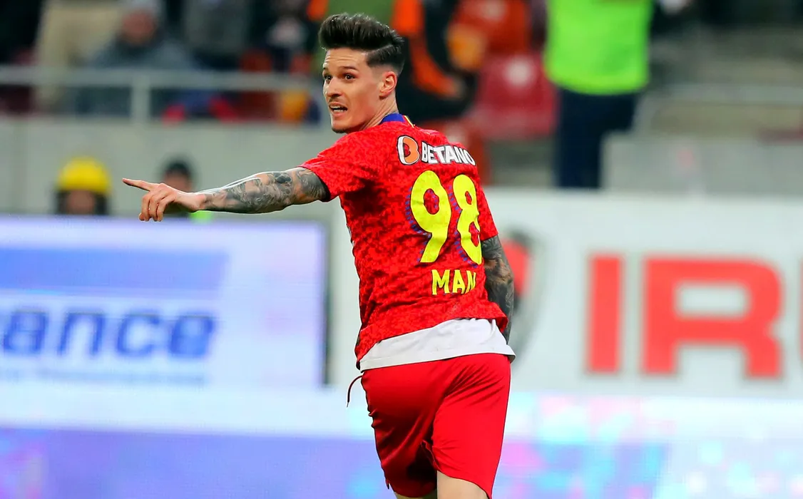 Dennis Man se bucura dupa un gol marcat in meciul de fotbal dintre FCSB si Universitatea Craiova, contand pentru Liga 1 Casa Pariurilor, desfasurat pe Arena Nationala din Bucuresti, duminica 22 decembrie 2019. © FOTO:Stefan Constantin/SPORT PICTURES