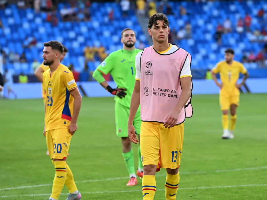 Matteo Dutu saluta galeria dupa meciul de fotbal dintre Spania U21 si Romania U21, din cadrul UEFA EURO U21 din Slovacia, desfasurat pe Stadionul National de fotbal din Bratislava, sambata 14 iunie 2025. © FOTO:Razvan Pasarica/SPORT PICTURES