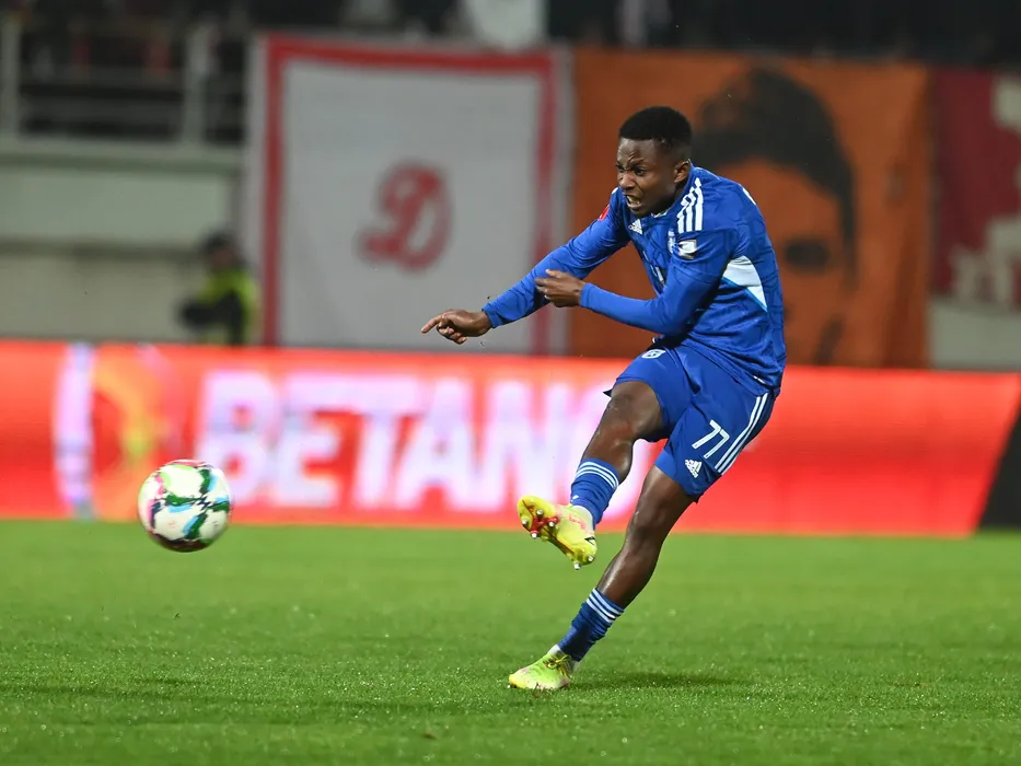 Samuel Asamoah in meciul de fotbal dintre Dinamo Bucuresti si FCU Craiova, contand pentru Cupa Romaniei, desfasurat pe Stadionul Marin Anastasovici din Giurgiu, marti 18 octombrie 2022. © FOTO:Razvan Pasarica/SPORT PICTURES