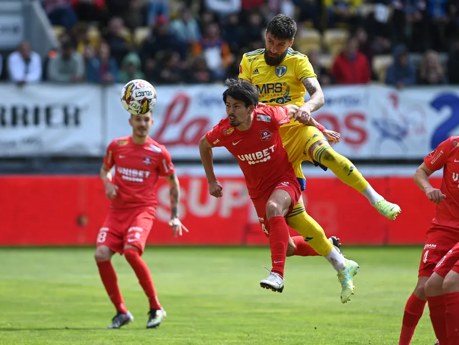 Mino Sota si Paul Papp in meciul de fotbal dintre Petrolul Ploiesti si FC Hermannstadt, contand pentru Play-out-ul Superligii Superbet, desfasurat pe Stadionul Ilie Oana din Ploiesti,sambata 13 mai 2023. © FOTO:Razvan Pasarica/SPORT PICTURES