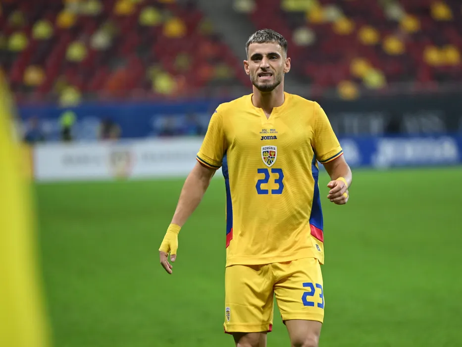 Vlad Dragomir reactioneaza in meciul amical de fotbal dintre Romania si Moldova, desfasurat pe Arena Nationala din Bucuresti, joi 9 octombrie 2025. © FOTO:Razvan Pasarica/SPORT PICTURES