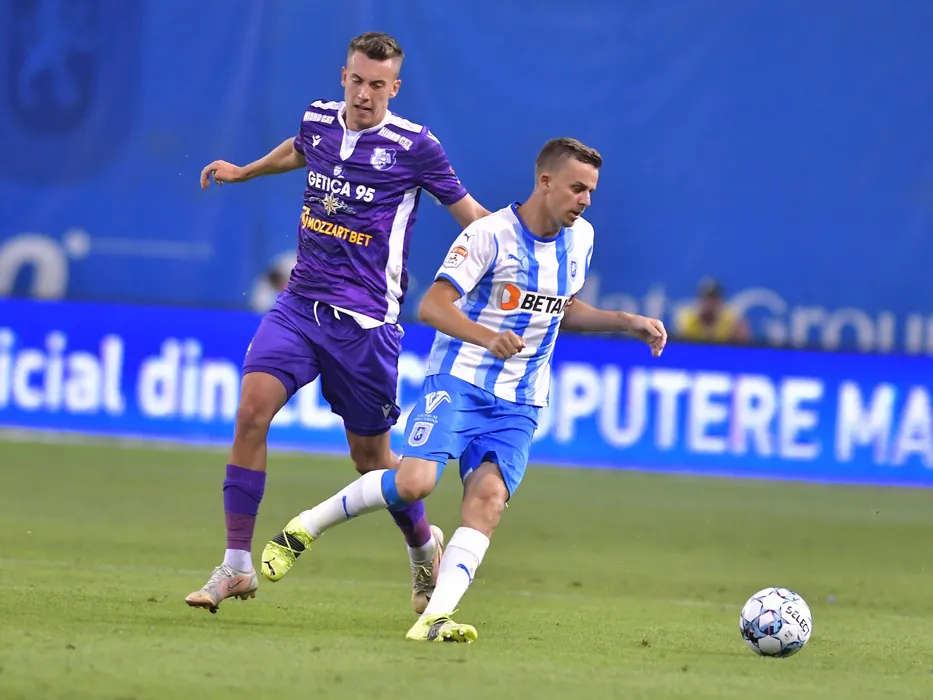 Mihai Alexandru Isfan si Nicusor Silviu Bancu in meciul de fotbal dintre Universitatea Craiova si FC Arges, contand pentru Liga 1 Casa Pariurilor, desfasurat pe Stadionul Ion Oblemenco din Craiova, sambata 17 iulie 2021. © FOTO:Razvan Pasarica/SPORT PICTURES