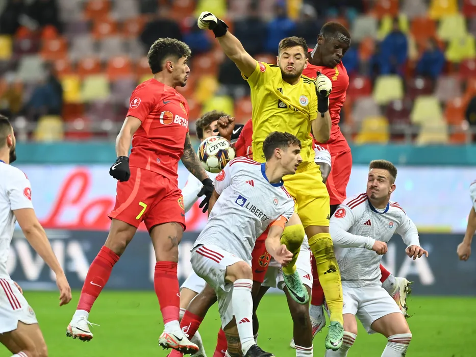 Florinel Teodor Coman, Joyskim Aurelien Dawa Tchakonte, Siyabonga Ngezana, Juri Cisotti, Cosmin Andrei Dur Bozoanca si Alexandru Mihai Constantin Pop in meciul de fotbal dintre FCSB si Otelul Galati, din cadrul Superligii Superbet, desfasurat pe Arena Nationala din Bucuresti, duminica 3 decembrie 2023. © FOTO:Razvan Pasarica/SPORT PICTURES