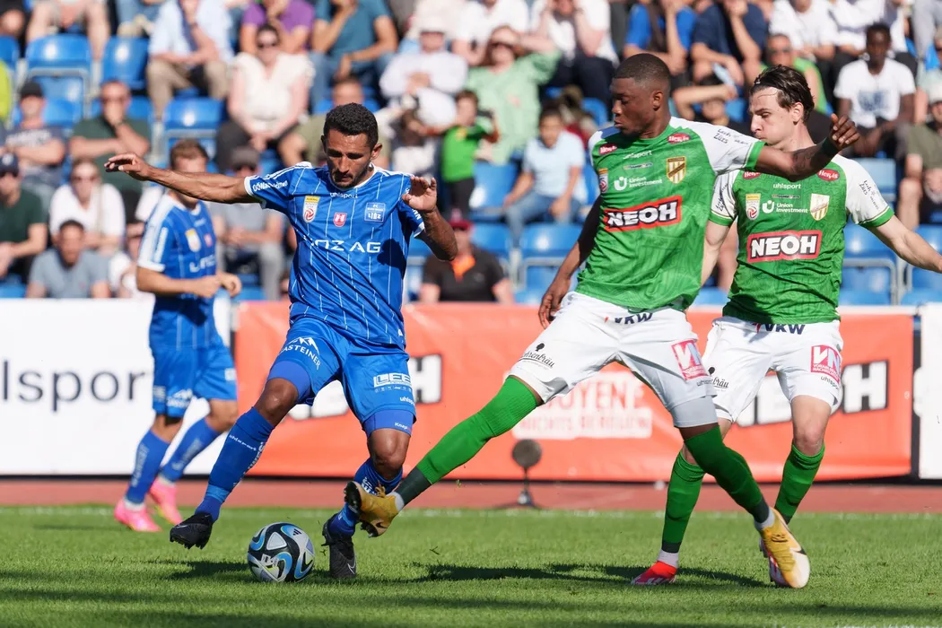ABD0147_20240511 - the Admiral Bundesliga - Qualification Group, 9th round match between SC Austria Lustenau and Blau-Weiß Linz on 11 May 2024, in Bregenz, Austria. Kennedy Kofi Boateng (r./SC Austria Lustenau) against Ronivaldo Bernardo Sales (Blau-Weiß Linz) - 20240511_PD5874,Image: 872538881, License: Rights-managed, Restrictions: AUSTRIA OUT, GERMANY OUT, SWITZERLAND OUT, UK OUT