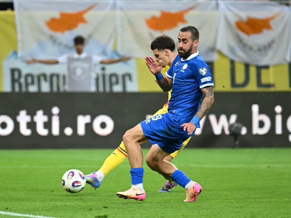 Dennis Man marcheaza un gol de langa Charalampos Kyriakou in meciul de fotbal dintre Romania si Cipru, din cadrul Preliminariilor Campionatului Mondial 2026, desfasurat pe Arena Nationala din Bucuresti, marti 10 iunie 2025. © FOTO:Razvan Pasarica/SPORT PICTURES