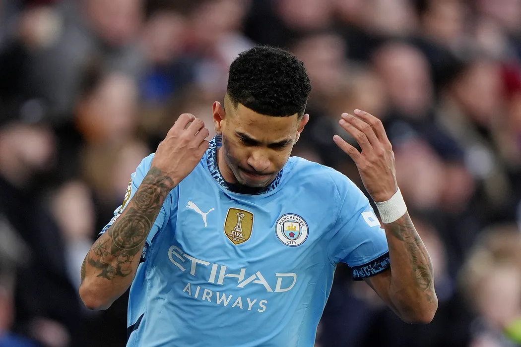 29 December 2024, United Kingdom, Leicester: Manchester City's Savinho celebrates scoring his side's first goal during the English Premier League soccer match between Leicester City and Manchester City at the King Power Stadium. Photo: Joe Giddens/PA Wire/dpa