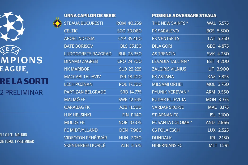 TRENCIN – STEAUA, în turul II al Ligii Campionilor. FC Botoșani – Tskhinvali, în turul I al Europa League și moldovenii vor da peste Legia dacă merg mai departe. Astra – Inverness, în turul II