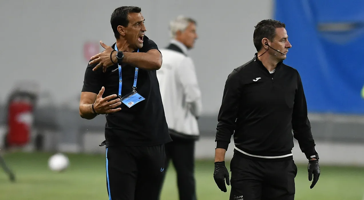 Bogdan Arges Vintila si Andrei Antonie in meciul de fotbal dintre Universitatea Craiova si FCSB, contand pentru play-off-ul Ligii 1 Casa Pariurilor, disputat fara spectatori pe Stadionul Ion Oblemenco din Craiova, duminica 12 iulie 2020. © FOTO:Razvan Pasarica/SPORT PICTURES