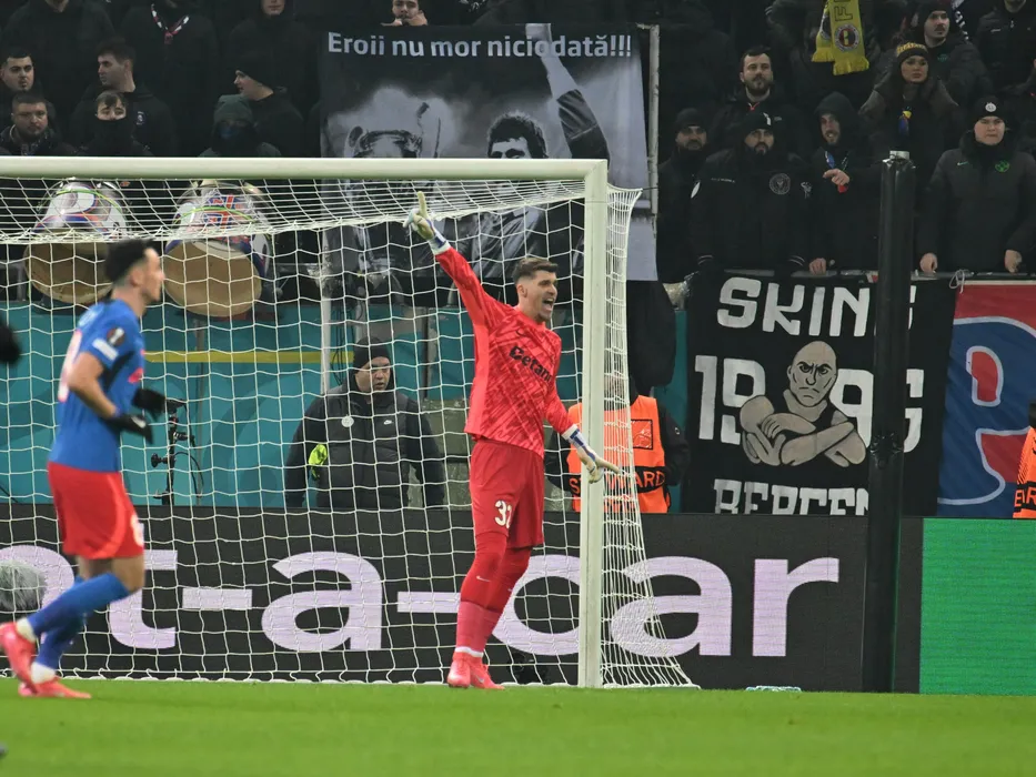 Ștefan Târnovanu reacționează in meciul de fotbal dintre FCSB si PAOK Salonic, din cadrul UEFA Europa League, desfasurat pe Arena Nationala din Bucuresti, joi 20 februarie 2025. © FOTO:Razvan Pasarica/SPORT PICTURES