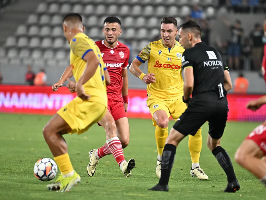 Selmani Astrit si Alexandru Mateiu in meciul de fotbal dintre Dinamo Bucuresti si Petrolul Ploiesti, din cadrul Superligii Superbet, desfasurat pe Stadionul National Arcul de Triumf din Bucuresti, duminica 21 iulie 2024. © FOTO:Razvan Pasarica/SPORT PICTURES
