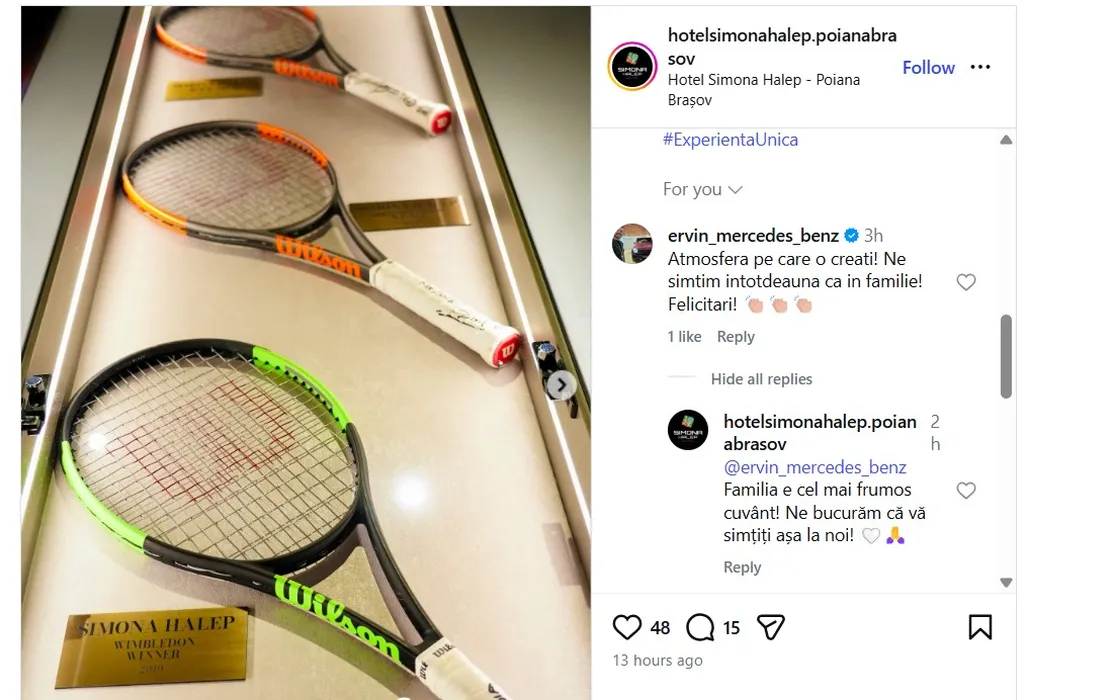 Un turist care s-a cazat de mai multe ori la hotelul Simonei Halep a lăsat un mesaj pentru personal: „Ne simțim întotdeauna așa”