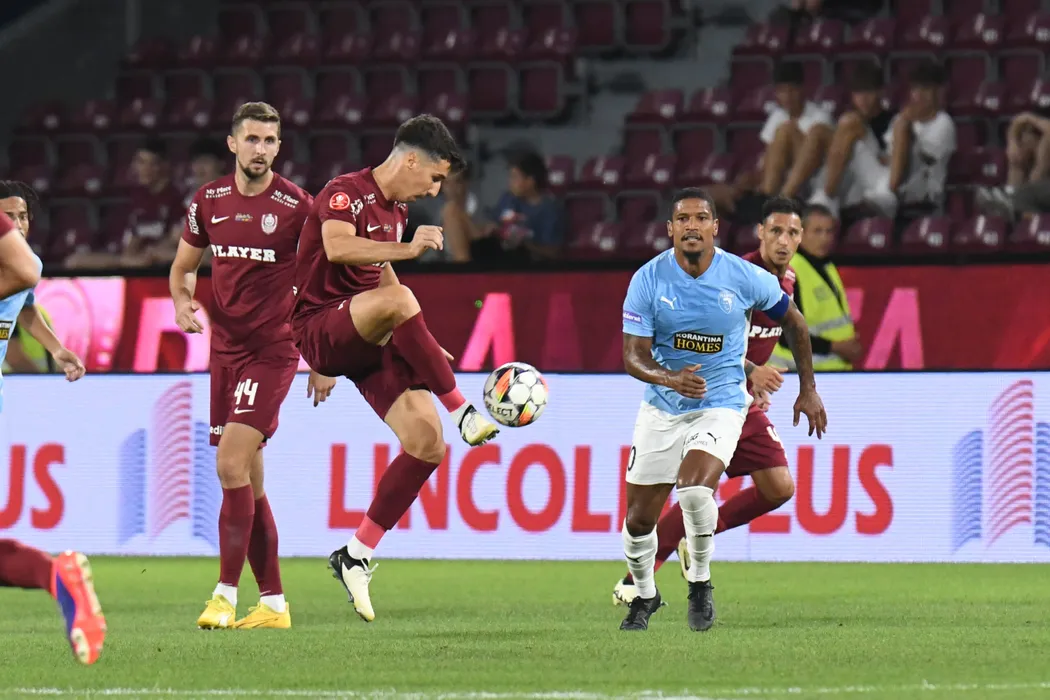Andrei Viorel Artean, Anton Kresic și Jairo în meciul de fotbal dintre FC CFR 1907 Cluj și Pafos FC , contând pentru play-off - ul Conference League, desfășurat pe Stadionul Dr.Constantin Rădulescu din Cluj-Napoca, joi 22 august 2024. © FOTO: Flaviu BUBOI/SPORT PIC5TURES