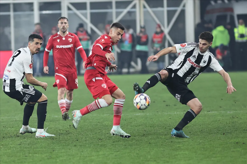 Catalin Ionut Cirjan, Antonio Manuel Luna Rodriguez si Gabriel Bogdan Simion, Andrei Viorel Artean in meciul de fotbal dintre Dinamo Bucuresti si Universitatea Cluj, contand pentru SuperLiga Superbet, desfasurat pe Stadionul Arcul de Triumf din Bucuresti, vineri 24 ianuarie 2025. © FOTO: Gheorghe Fluster/SPORT PICTURES