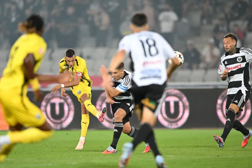 Catalin Ionut Cirjan si Alessandro Murgia în meciul de fotbal dintre Universitatea Cluj si Dinamo Bucuresti, contând pentru Superliga Superbet, desfășurat pe Cluj Arena din Cluj Napoca, sambata 23 august 2025. © FOTO:Flaviu Buboi/SPORT PICTURES
