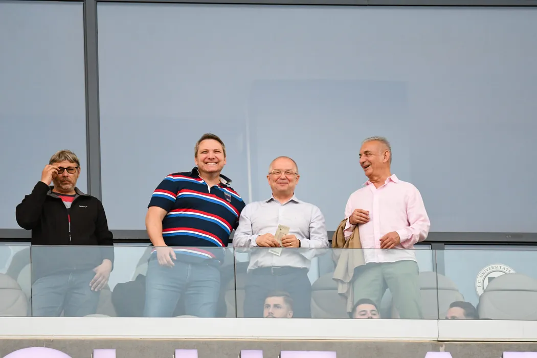 Emil Boc urmareste meciul de fotbal dintre Universitatea Cluj si Dinamo Bucuresti din prima mansa a barajului mentinere/promovare în Liga 1, disputat pe stadionul Cluj Arena din Cluj-Napoca, sambata, 21 mai 2022. FLAVIU BUBOI / MEDIAFAX FOTO
