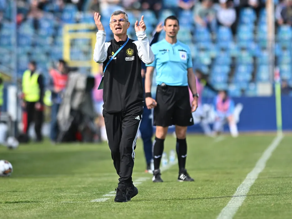 Ovidiu Ioan Sabau reacționează in meciul de fotbal dintre Otelul Galati si Universitatea Cluj, din cadrul Play-out-ului Superligii Superbet, desfasurat pe Stadionul Otelul din Galati, duminica 21 aprilie 2024. © FOTO:Razvan Pasarica/SPORT PICTURES