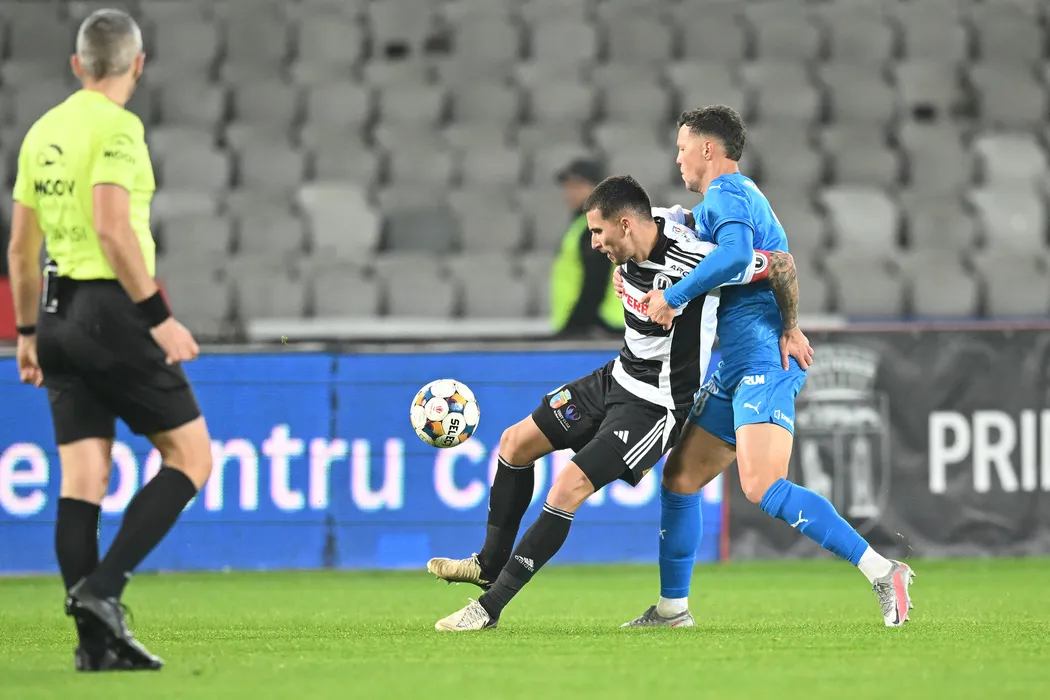 Gabriel Bogdan Simion si Adrian Rus in meciul de fotbal dintre FC Universitatea Cluj si Universitatea Craiova, contand pentru Superliga Superbet, desfasurat pe Cluj Arena din Cluj-Napoca, luni 1 decembrie 2025. © FOTO:Flaviu Buboi/SPORT PICTURES