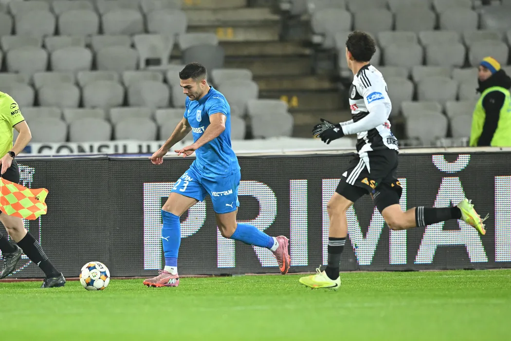 Samuel Teles Pereira Nunes Da Silva si Omar El Sawy in meciul de fotbal dintre FC Universitatea Cluj si Universitatea Craiova, contand pentru Superliga Superbet, desfasurat pe Cluj Arena din Cluj-Napoca, luni 1 decembrie 2025. © FOTO:Flaviu Buboi/SPORT PICTURES