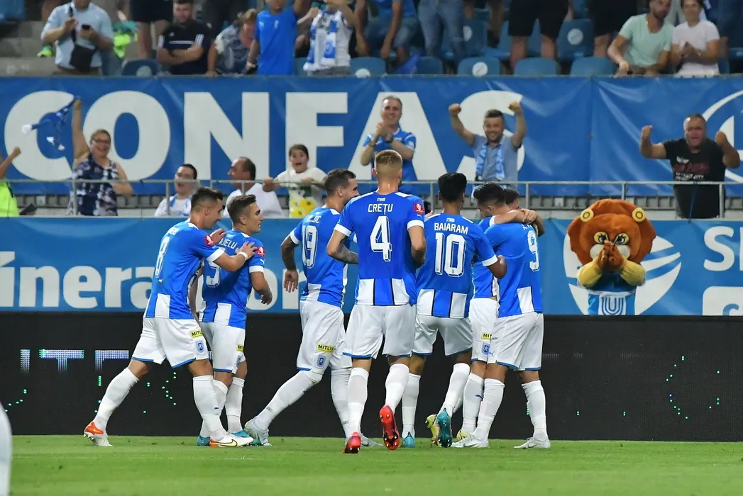 Meciul de fotbal dintre echipele Universitatea Craiova (echipament alb/albastru) si Sepsi OSK din prima etapa a Superligii, disputat pe stadionul Ion Oblemenco din Craiova, vineri, 15 iulie 2022 . REMUS BADEA / MEDIAFAX FOTO