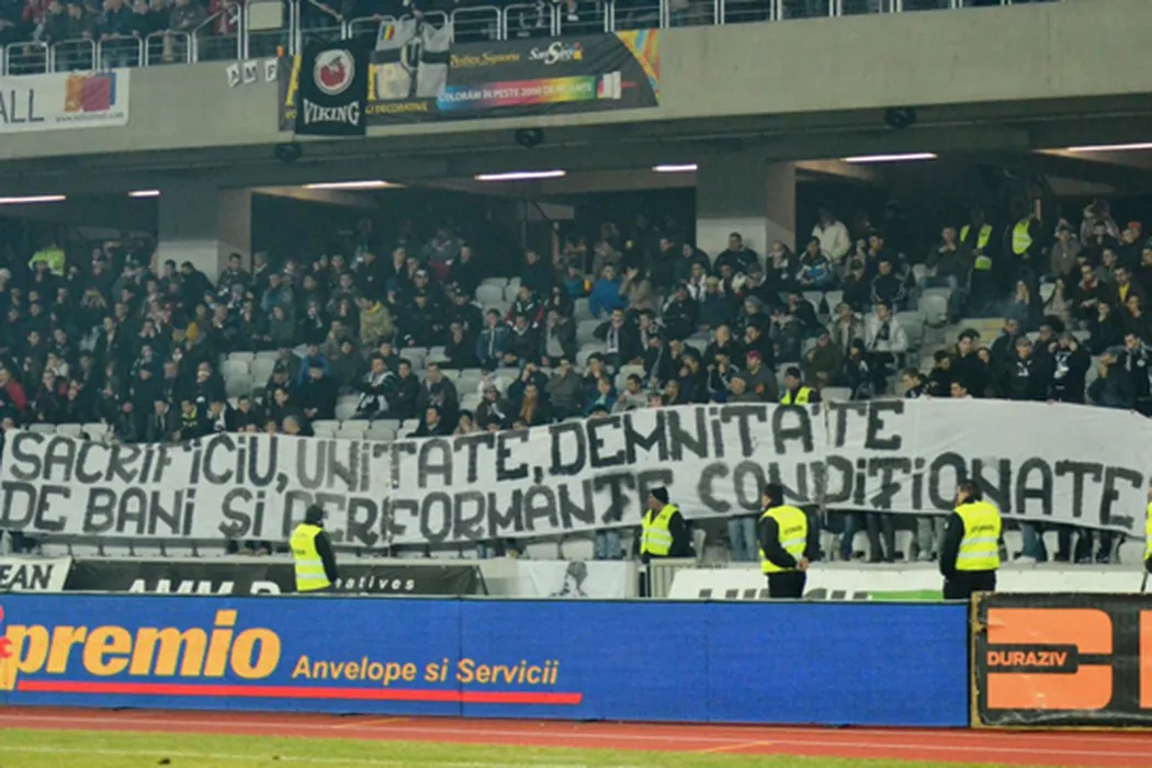 „U” – Steaua, teatrul unuia dintre cele mai emoționante bannere care s-au văzut în România. **”Șepcile” au stricat tot cu un mesaj greu de reprodus la adresa lui Reghecampf