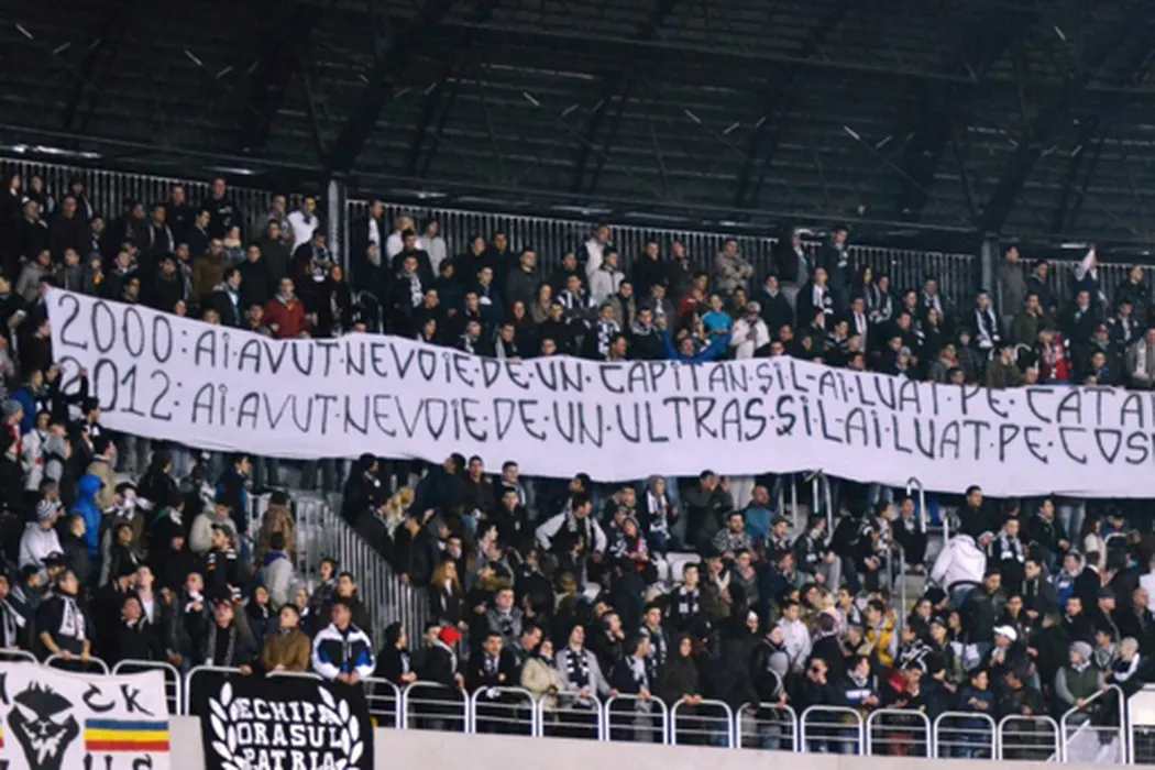 „U” – Steaua, teatrul unuia dintre cele mai emoționante bannere care s-au văzut în România. **”Șepcile” au stricat tot cu un mesaj greu de reprodus la adresa lui Reghecampf