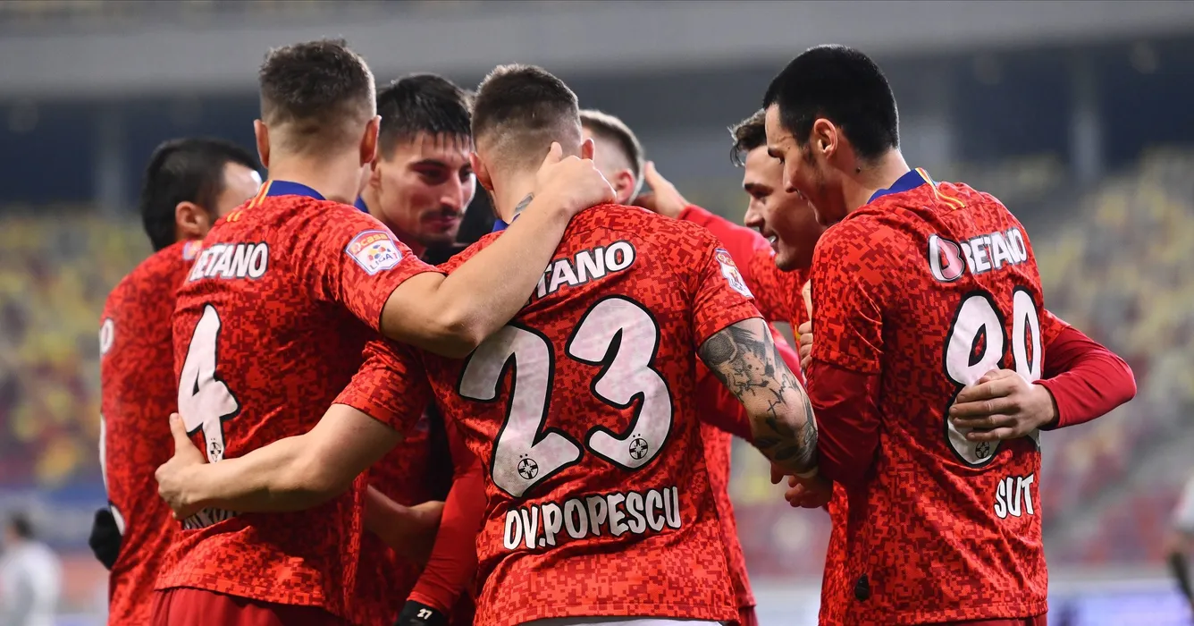Bucurie stelista cu Iulian Lucian Cristea, Gabriel Bogdan Simion si Adrian Gheorghe Sut in meciul de fotbal dintre FCSB si UTA Arad, contand pentru Liga 1 Casa Pariurilor, desfasurat fara spectatori pe Arena Nationala din Bucuresti, sambata 5 decembrie 2020. © FOTO:Razvan Pasarica/SPORT PICTURES
