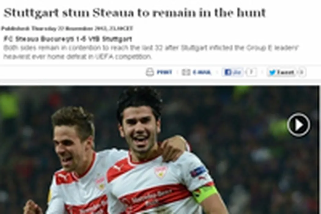 UEFA, impresionată de ce s-a întâmplat pe Național Arena!** „Stuttgart a amețit-o pe Steaua și a obținut o victorie istorică”