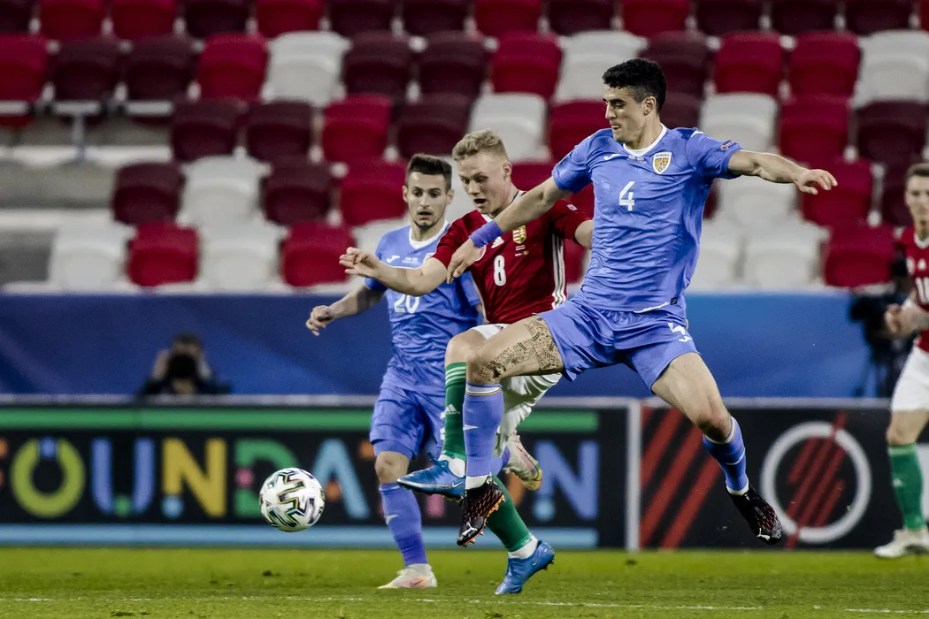 Alexandru Pascanu (D) in meciul de fotbal dintre Ungaria U21 si Romania U21 (echipament albastru) din grupa A de la EURO U21, disputat pe Bozsik Arena din Budapesta, Ungaria, sambata, 27 martie 2021. VIORICA PANA / MEDIAFAX FOTO