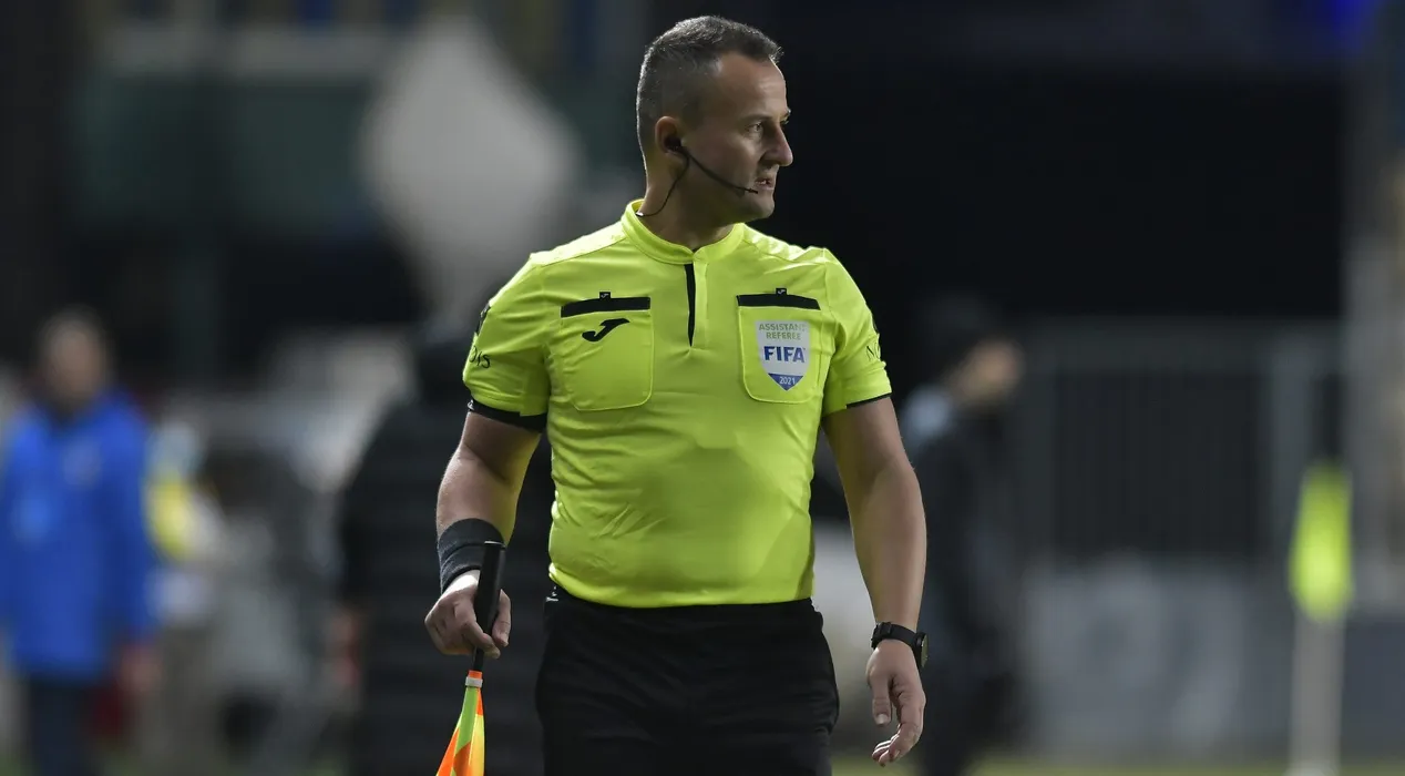 Arbitrul asistent Octavian Sovre in meciul de fotbal dintre Chindia Targoviste si FC Botosani, contand pentru Liga 1 Casa Pariurilor, desfasurat fara spectatori pe Stadionul Ilie Oana din Ploiesti, joi 4 februarie 2021. © FOTO:Razvan Pasarica/SPORT PICTURES