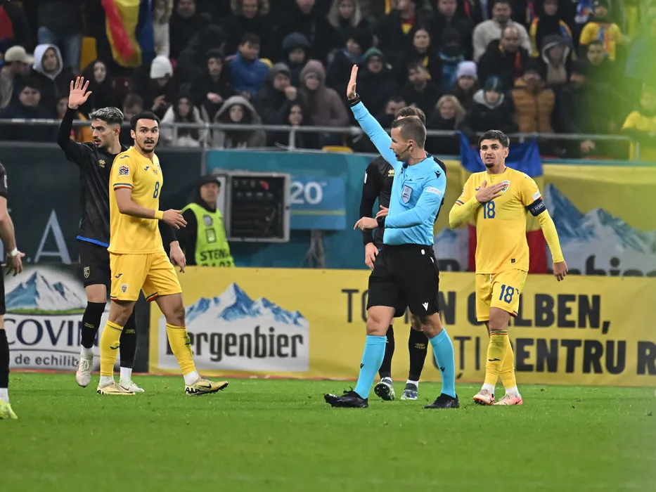 Arbitrul central Morten Krogh alaturi de Albion Rrahmani, Adrian Sut si Răzvan Marin in meciul de fotbal dintre Romania si Kosovo, contand pentru Liga Natiunilor, desfasurat pe Arena Nationala din Bucuresti, vineri 15 noiembrie 2024. © FOTO:Razvan Pasarica/SPORT PICTURES
