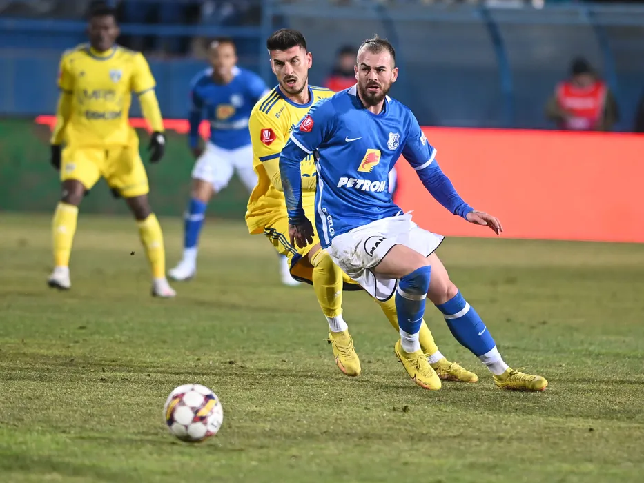 Cosmin Florin Achim si Denis Alibec in meciul de fotbal dintre Farul Constanta si Petrolul Ploiesti, contand pentru Superliga Superbet, desfasurat pe Stadionul central al Academiei Gheorghe Hagi din Ovidiu, sambata 18 februarie 2023. © FOTO:Razvan Pasarica/SPORT PICTURES
