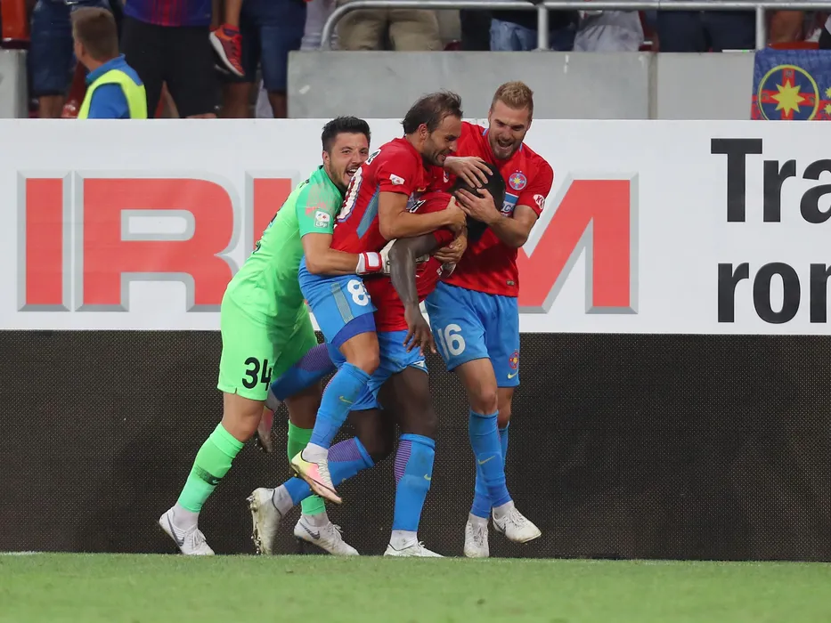 Jucatorii echipei FCSB reactioneaza dupa inscrierea unui gol in meciul de fotbal contra formatiei Hajduk Split, din mansa secunda a turului trei preliminar al Ligii Europa, disputat pe Arena Nationala din Bucuresti, joi, 16 august 2018.© FOTO: Stefan Constantin / Sport Pictures