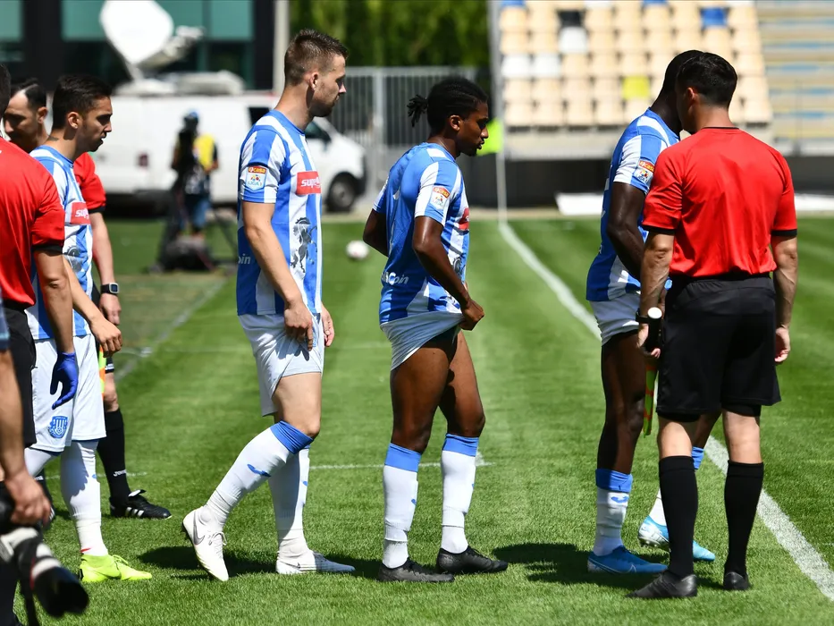 Linas Klimavicius si Rodny Lopes Cabral la intrarea pe teren la meciul de fotbal dintre Chindia Targoviste si CSM Politehnica Iasi, contand pentru play-out-ul Ligii 1 Casa Pariurilor, disputat fara spectatori pe Stadionul Ilie Oana din Ploiesti, sambata 27 iunie 2020. © FOTO:Razvan Pasarica/SPORT PICTURES