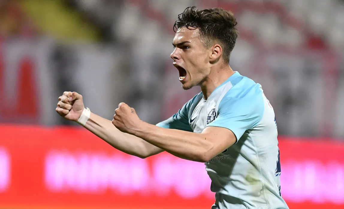 Cristian Cosmin Dumitru se bucura dupa un gol marcat in meciul de fotbal dintre Dinamo Bucuresti si FCSB, contand pentru turul semifinalei Cupei Romaniei, disputat fara spectatori pe Stadionul Dinamo din Bucuresti, joi 25 iunie 2020. © FOTO:Razvan Pasarica/SPORT PICTURES