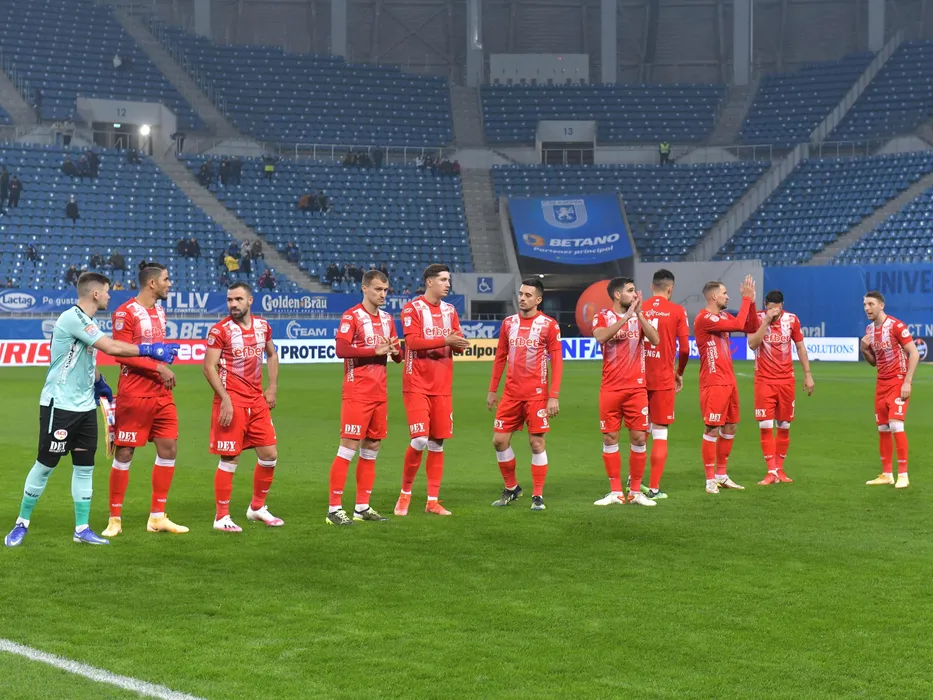 Fotbalistii aradeni la startul meciului de fotbal dintre Universitatea Craiova si UTA Arad, contand pentru Liga 1 Casa Pariurilor, desfasurat pe Stadionul Ion Oblemenco din Craiova, marti 14 decembrie 2021. © FOTO:Razvan Pasarica/SPORT PICTURES