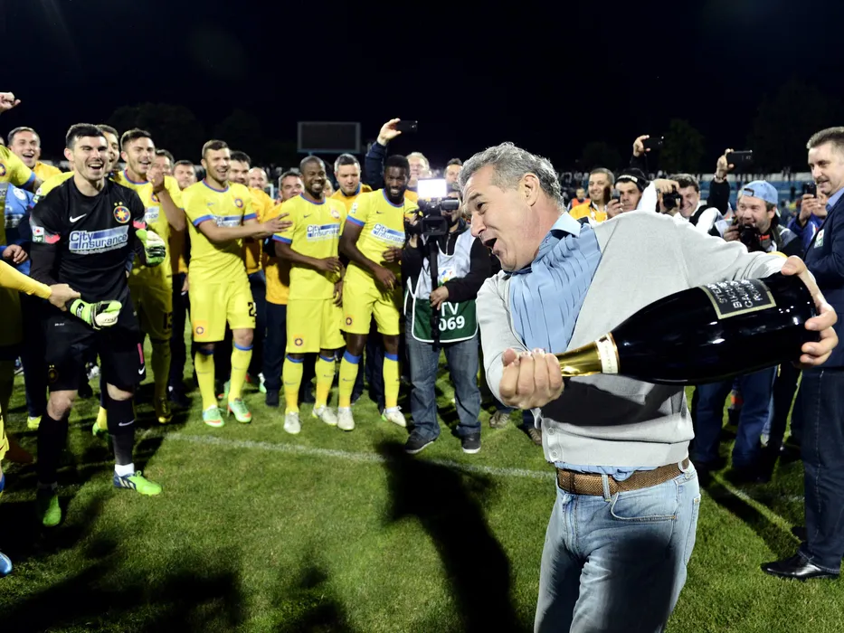 Gigi Becali alaturi de o sticla de sampanie